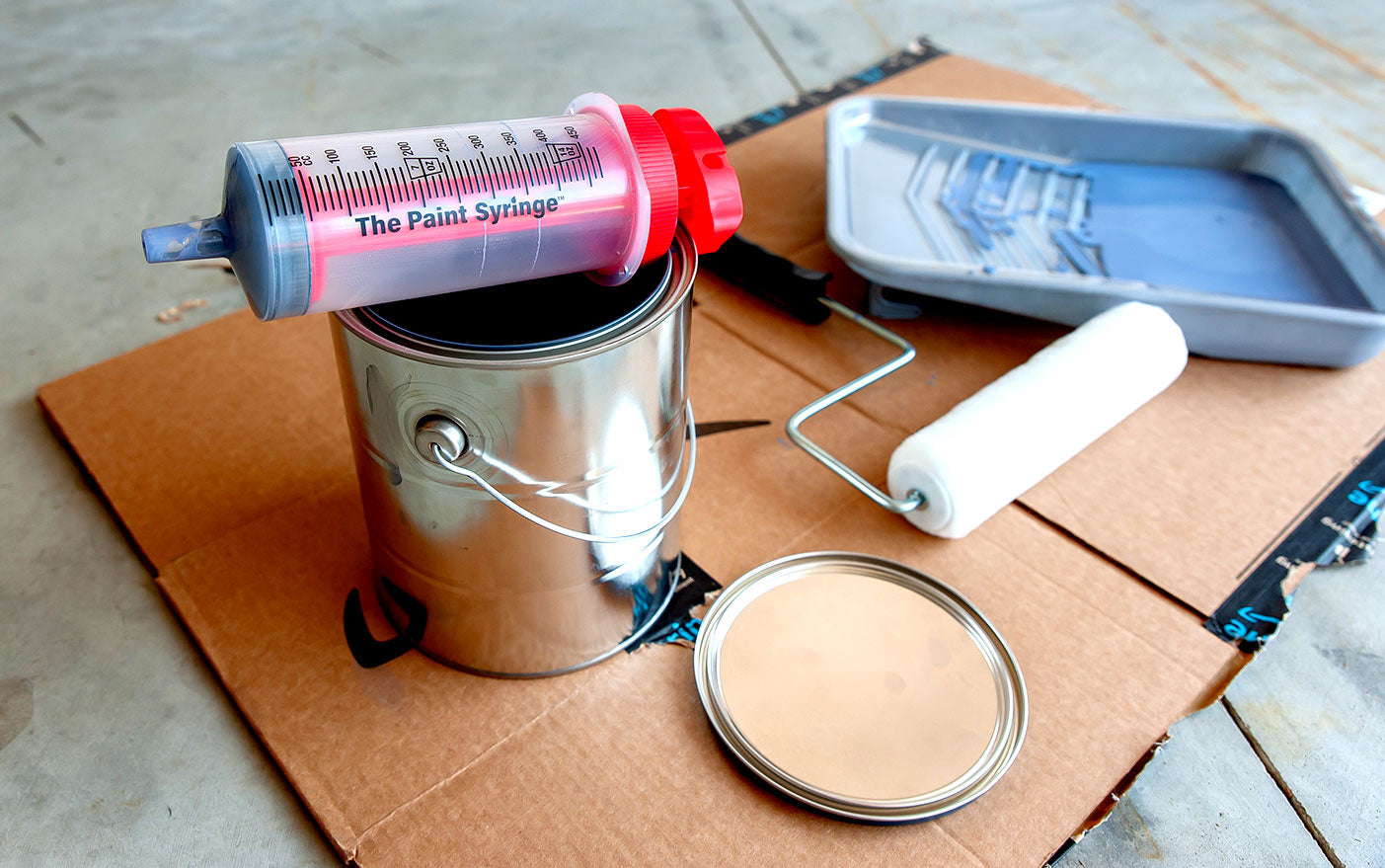This innovative tool allows you to dispense large amounts of paint from a can — without having to lift or pour from the can at all! Transform the way you paint at home with The Paint Syringe.